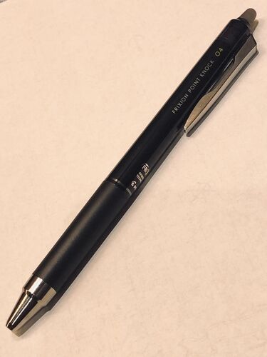消せるボールペンの代名詞的な「フリクションボール」。 僕が勤めている会社では、ほぼ全員が愛用しているんじゃないか?というほど普及しています。 でもね、僕は「フリクションボール」の発色がちょっと好きじゃない。 なんというか薄墨のような、なんだか…