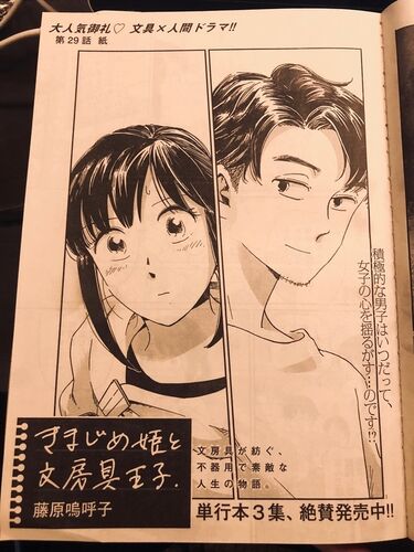僕の激推し漫画「きまじめ姫と文房具王子」 今月で第29話・・・ 29話 表紙 アニメなら2クールを終え、3クール目に突入です。 先月号あたりからちょっとすごい感じになって来ました。 個人的にグッと大人感な内容です。 姫路先生が合コンに行って、姫路先生の…